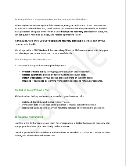 This procedure gives you a clear, practical framework to protect your files, systems, and critical business information, and recover quickly in the event of an incident.