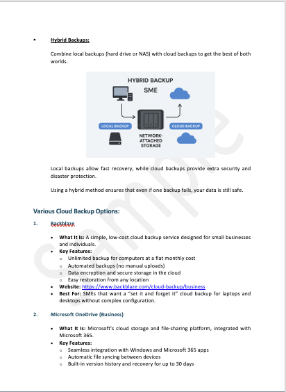 - Offsite & Cloud Options: Guidance for storing backups securely, both locally and in the cloud.